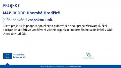 Cílem projektu je podpora společného plánování a spolupráce zřizovatelů, škol a ostatních aktérů ve vzdělávání včetně organizací neformálního vzdělávání v ORP Uherské Hradiště.